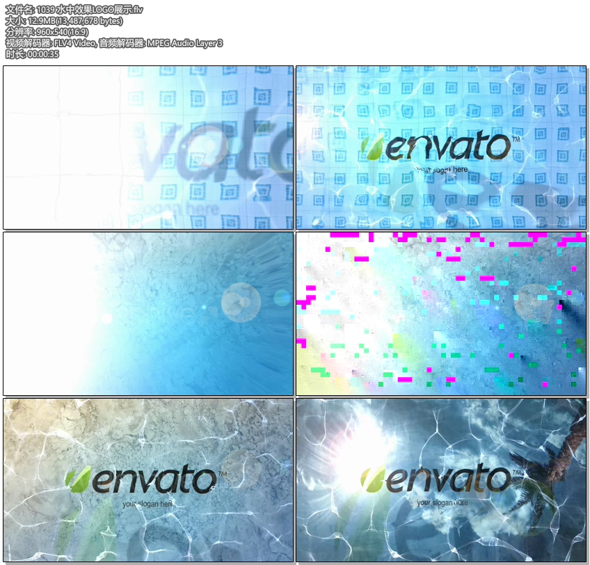 关键词:水,水下,水中,效果,LOGO,标志,展示,AE,模板