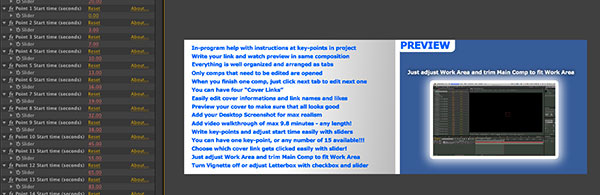 Add key-points that describe advantages of your product at any point in time in your video by simply entering number of seconds in slider control. There is max 15 one-lined key-points placeholders that you edit, adjust timings and preview in same window!