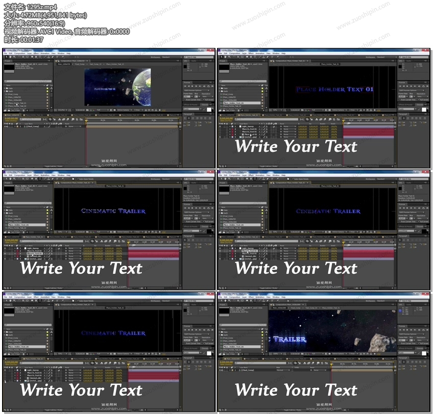 关键词:影视,电影,空间,文本,文字,标题,字幕,字幕条,开场,预告,预告片,AE,模板