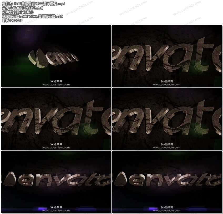 关键词:3D,立体,故障,金属,效果,LOGO,标志,演绎,展示,AE,模板
