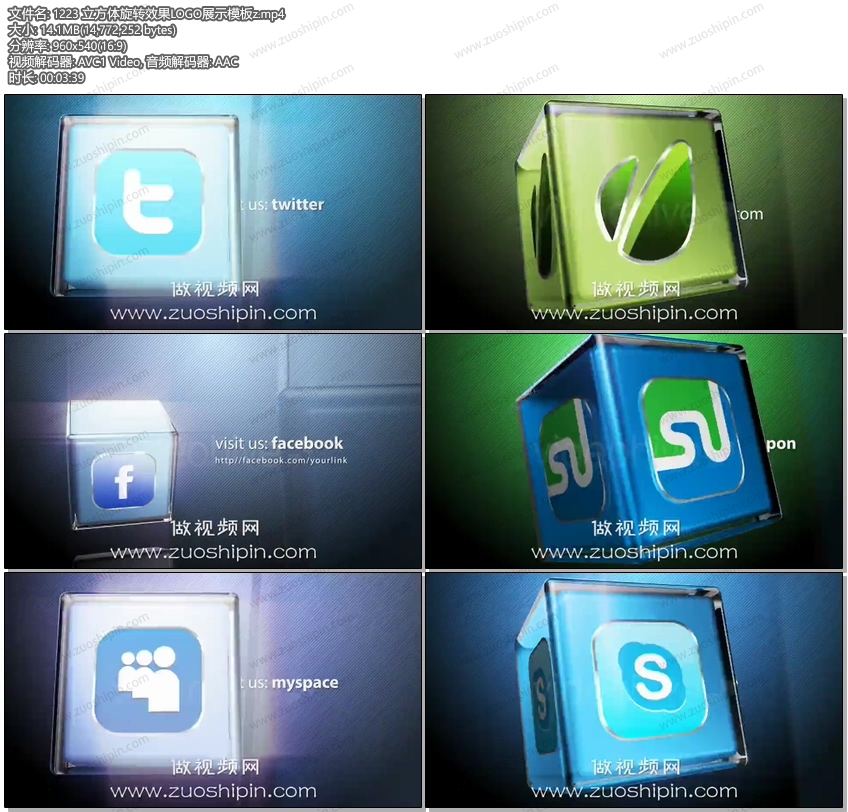 关键词:立体,立方,立方体,方块,旋转,效果,LOGO,标志,展示,AE,模板