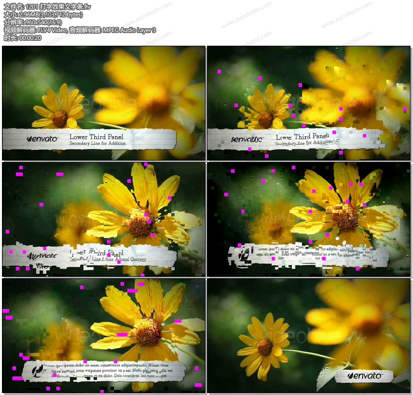 A great 3-pack of stylized, customizable, paper lower third graphics! The information types onto the page, just like a typewriter.
