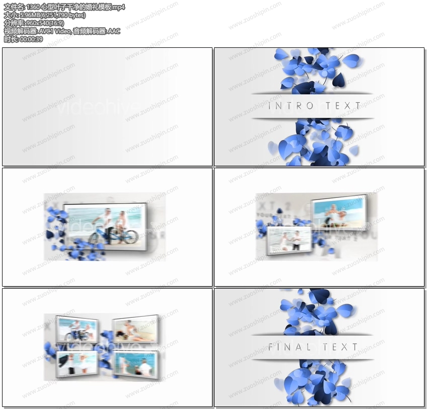 心型相框婚礼情人节照片展示相册模板Tender Frames