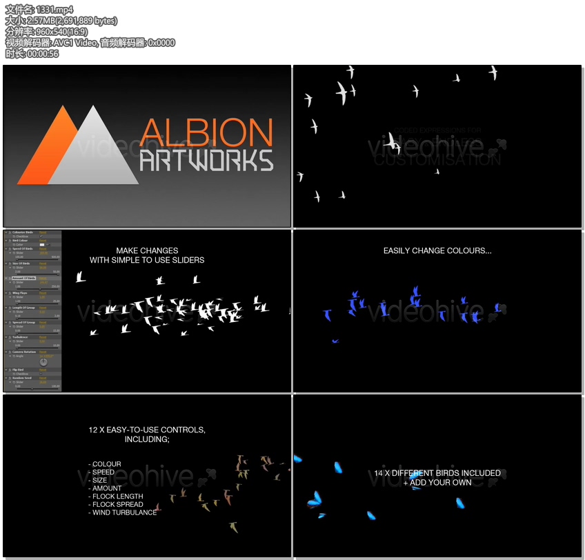 飞鸟燕子蝴蝶飞过动画AE特效模板Flocking Bird Generator