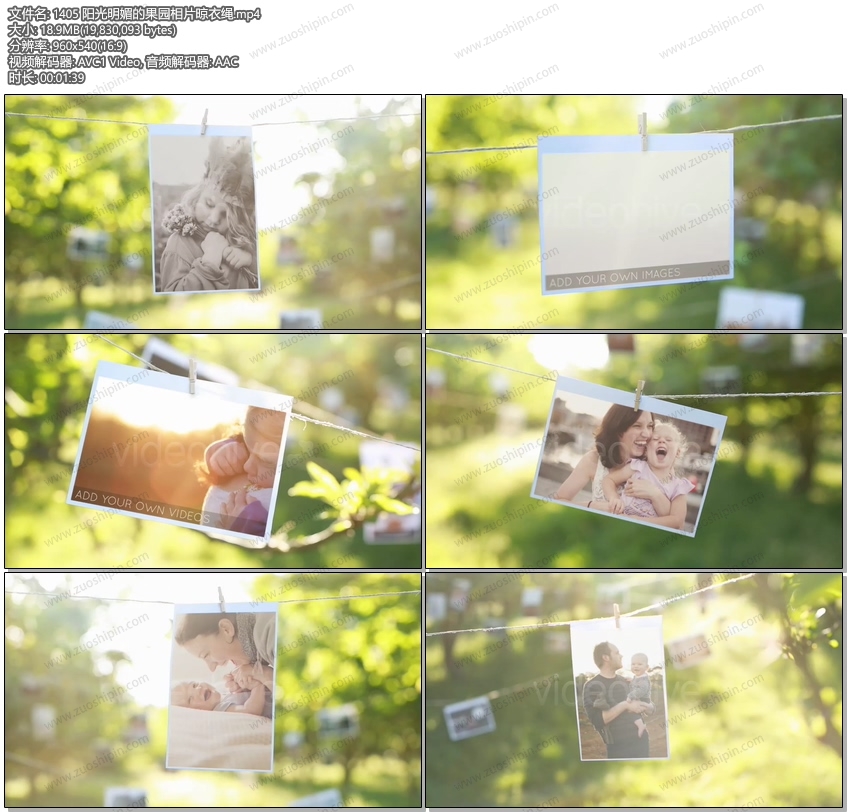 关键词:阳光明媚,果园,绳子,晾衣绳,照片,相片,展示,相册,AE,模板