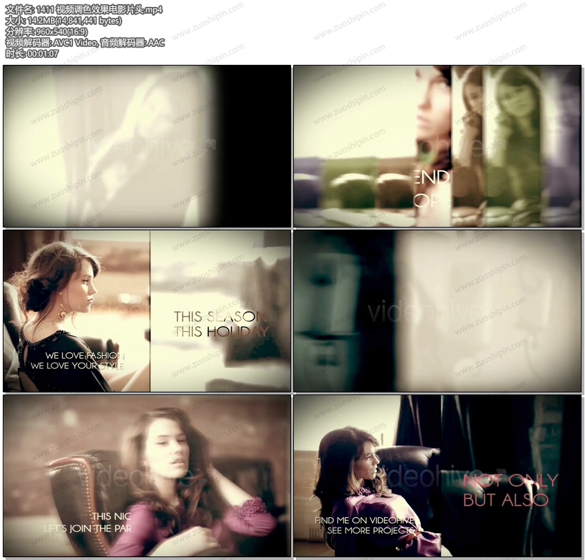 AE模板> 视频调色效果电影片头展示相册模板Model Show Slide