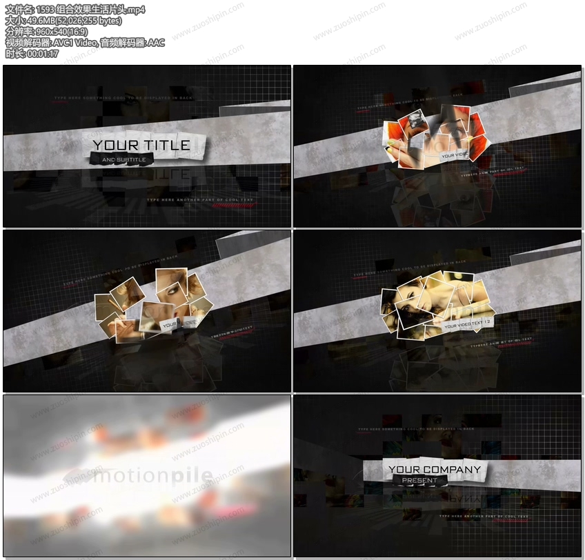 AE模板> 图片堆叠组合效果生活片头AE模板素材Pieces of Life