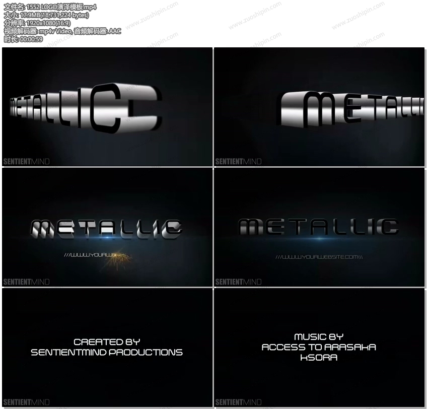 关键词:3D,立体,黑色,金属,质感,LOGO,标志,展示,演绎,AE,模板,素材
