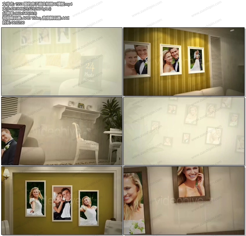 This Project file is CS5 compatible with HD resolution (1920×1080). All the photos are customizable. it can be used for wedding , valentine, romance and family photos. The project replaces the photos on the wall with your photos and it renders it very fast. it includes 13 scenes that you can modify them in the timeline.