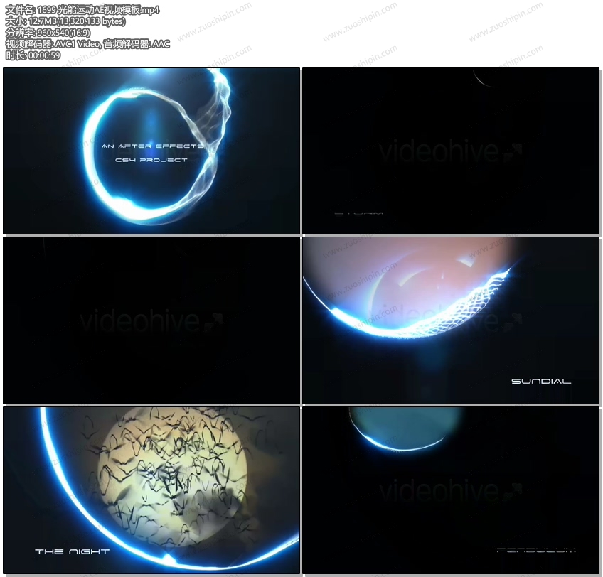 - Prerendered version (no plugins required) + Original version (requires trapcode particular/starglow and videocopilot optical flares)