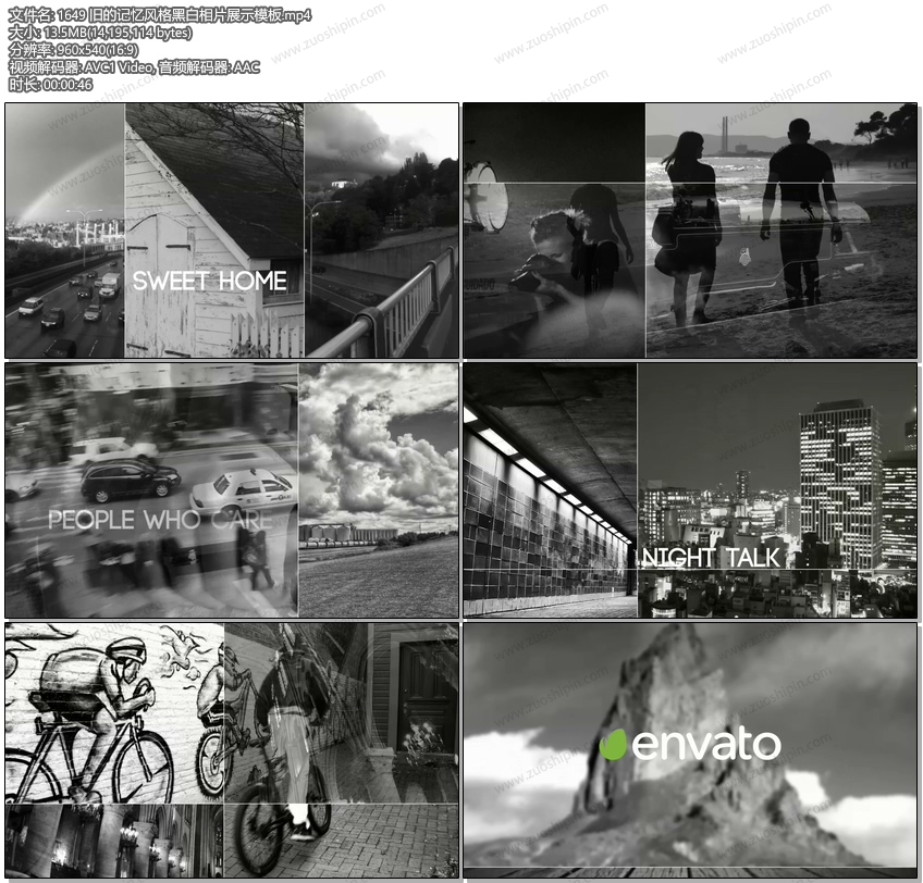 关键词:老旧,记忆,回忆,黑白,风格,相片,照片,幻灯片,展示,相册,AE,模板,素材