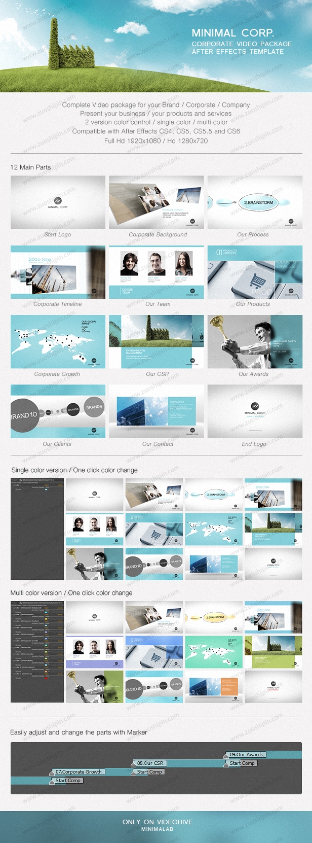 1.Start Logo / 2.Corporate Background / 3.Our Process / 4.Corporate Timeline / 5.Our Team / 6.Our Products / 7.Corporate Growth / 8.Our CSR / 9.Our Awards / 10.Our Clients / 11.Our Contact / 12.End Logo