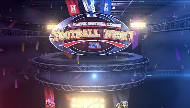 Football Night american football template. Football Night gives you the chance to build your own football opener, promo etc. You can add your videos or pictures. Change the logos or modify the default. Change helmets and flags colors. From this template you can learn how to build a 3D logo in After Effects, how to set up a flag, a lot of compositing variations for advanced users.