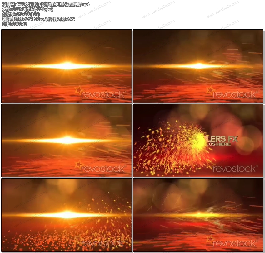 关键词:火花,粒子,文本,文字,组合,电影,影视,标题,字幕,开场,片头,AE,模板,素材