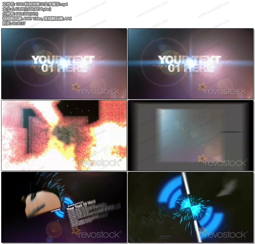 关键词:粉碎,效果,3D,三维,立体,文本,文字,标题,字幕,视频,图片,展示,片头,AE,模板,素材