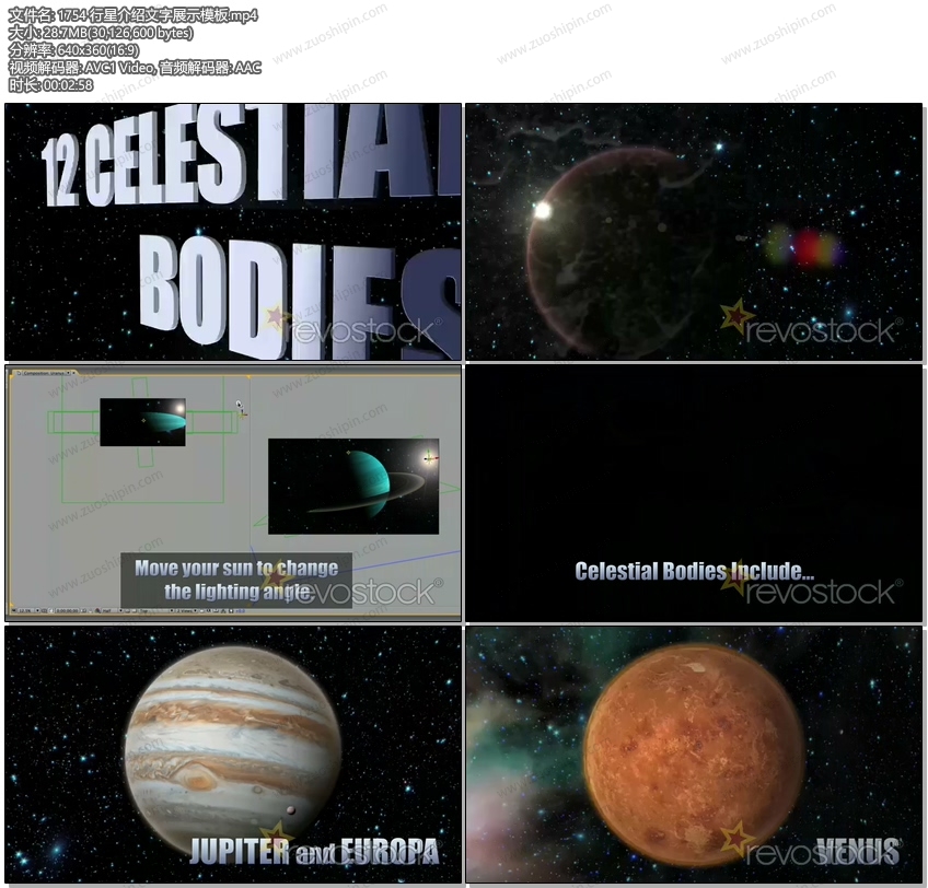 关键词:行星,星空,太空,星球,介绍,文本,文字,标题,字幕,开场,片头,展示,AE,模板,素材