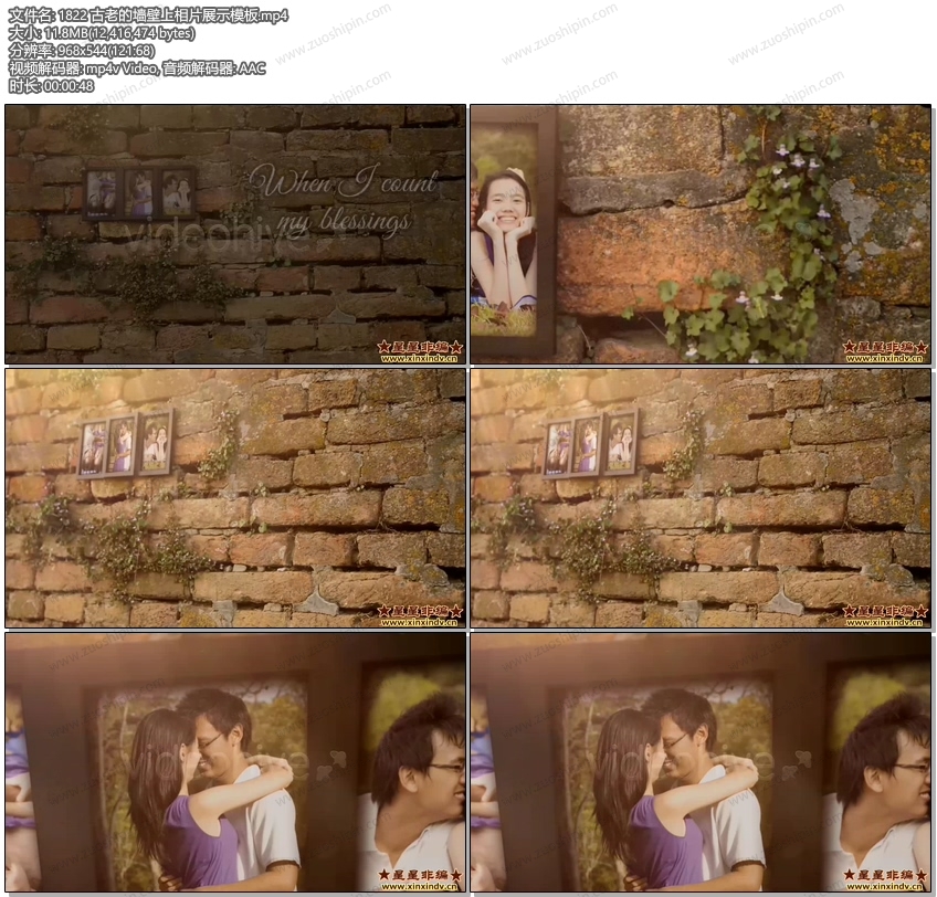 关键词:古老,墙壁,照片,相框,相片,展示,相册,AE,模板,素材