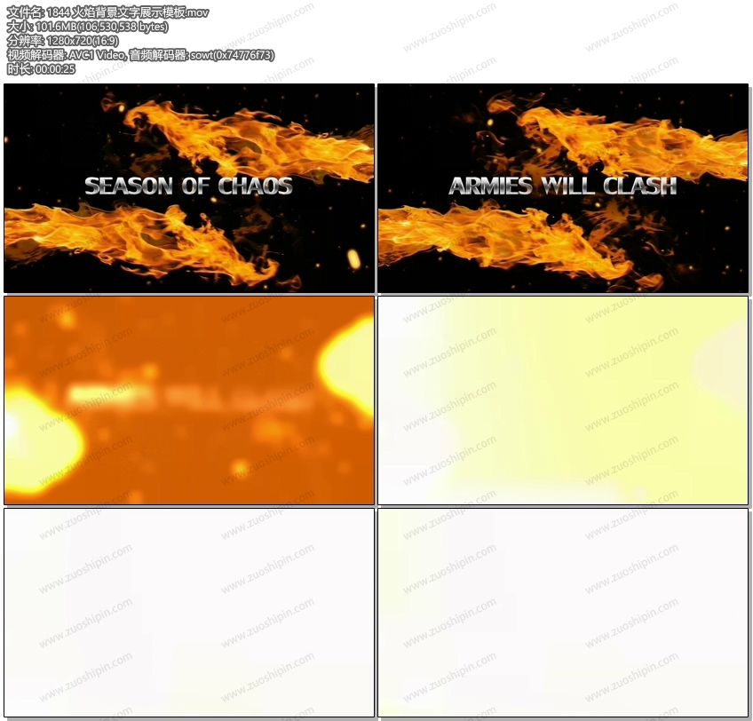 关键词:火焰,背景,文本,文字,标题,字幕,开场,片头,展示,AE,模板,素材