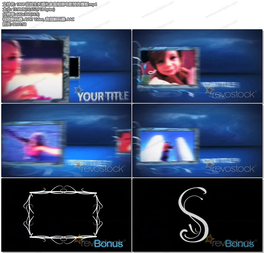 关键词:花纹,生长,婚礼,婚庆,结婚,家庭,照片,相片,幻灯片,相册,视频,电影,影视,预告,预告片,开场,片头,AE,模板,素材