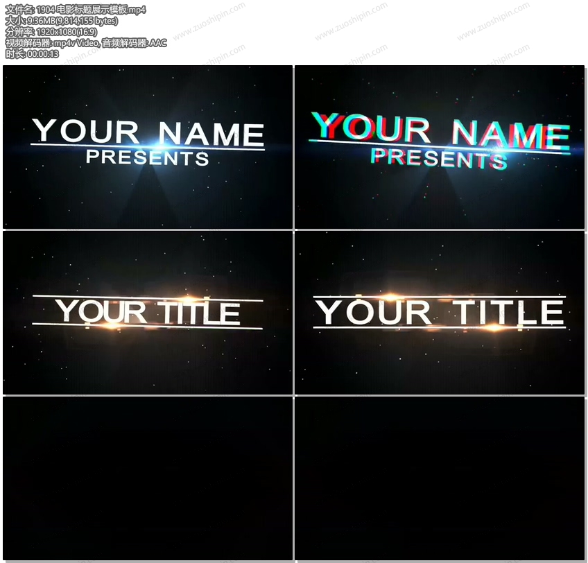 关键词:影视,电影,文本,文字,标题,字幕,开场,片头,展示,AE,模板,素材