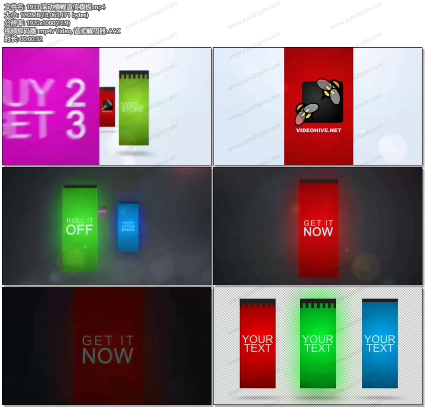AE模板> 滚动横幅宣传片头AE模板素材Roll It Off Banner Promotion