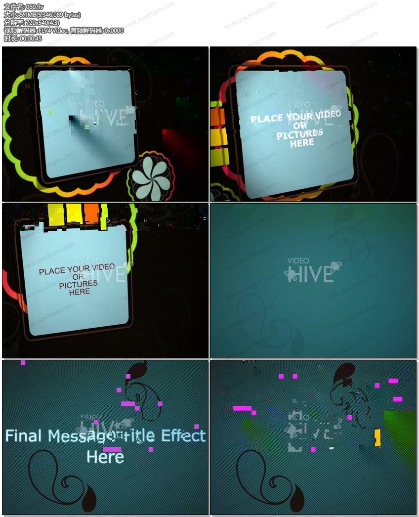 绿色叶子照片墙相册AE模板素材Grungy Wall