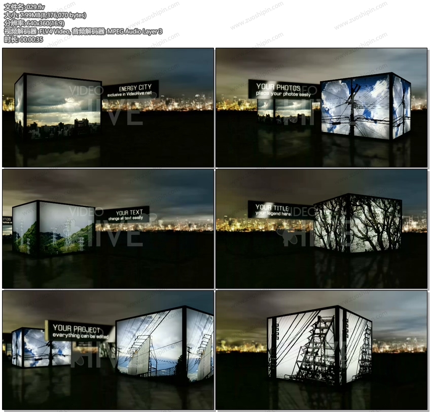 • Surprising cube animation in After Effects CS3 ( or above ) in full HD (1920×1080).