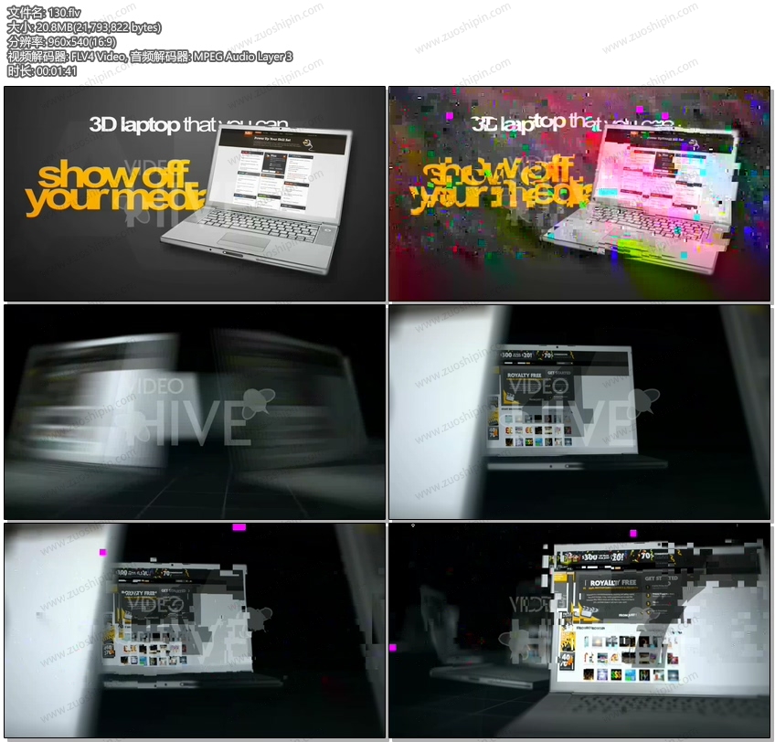 - 3D laptop that you can animate, rotate, move around, open/close lid, display your media on its screen. Import it to your project to add extra reality level.