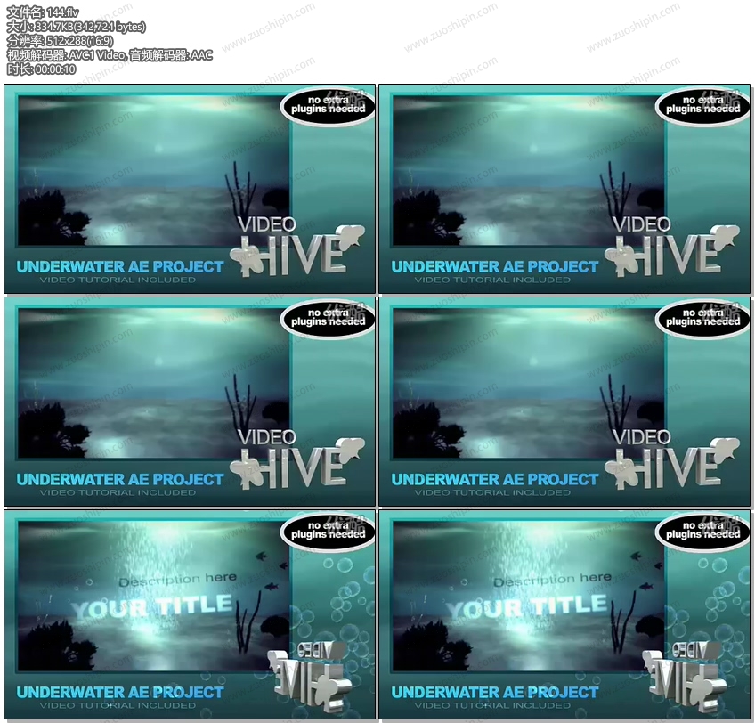 关键词:热带,海底,水下,文字,标题,字幕,展示,AE,模板,素材