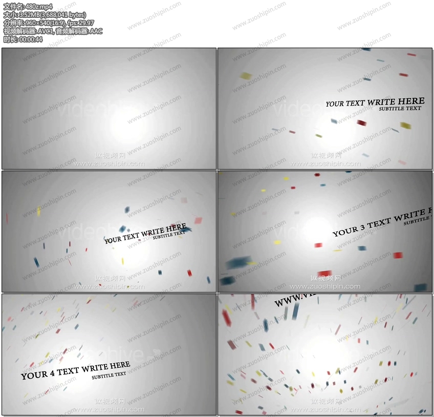 关键词:彩色,碎片,舞动,文本,文字,标题,字幕,开场,片头,AE,模板,素材