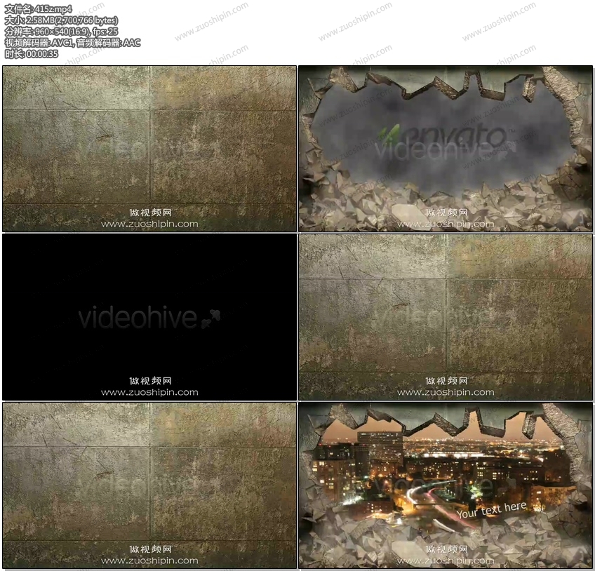 关键词:墙体,破裂,爆裂,LOGO,标志,展示,AE,模板,素材