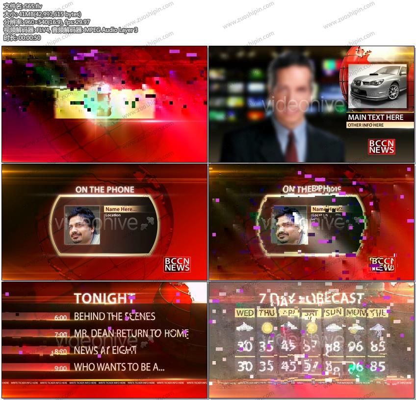 关键词:红色,电视,新闻,广播,栏目,包装,字幕条,AE,模板,素材