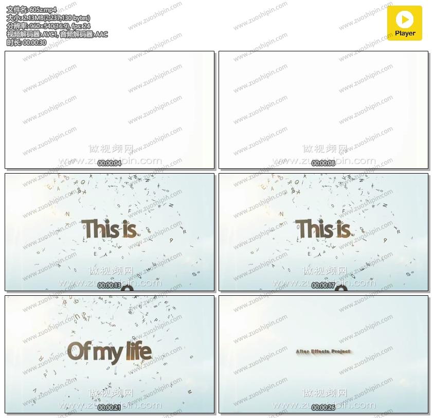 关键词:字母,散落,文本,文字,标题,字幕,开场,片头,AE,模板,素材