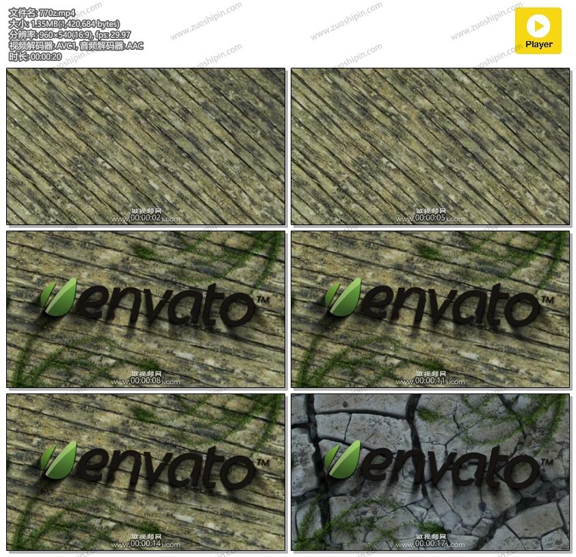 关键词:绿色,生态,木板,岩石,植物,生长,LOGO,标志,展示,AE,模板,素材