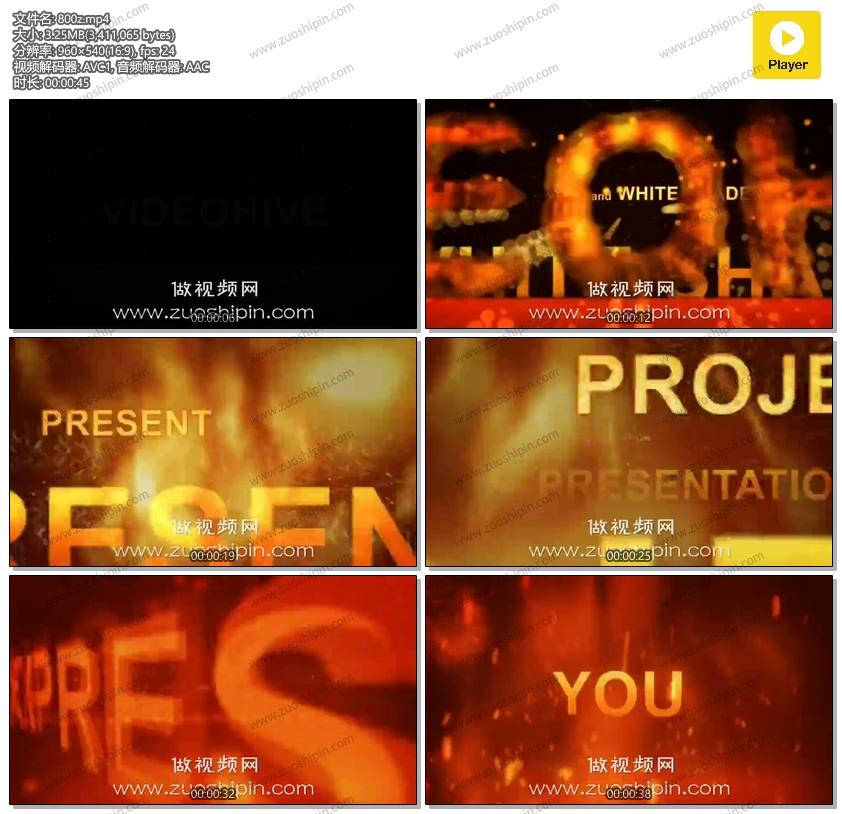 关键词:炽热,火热,火花,文本,文字,标题,字幕,开场,片头,AE,模板,素材