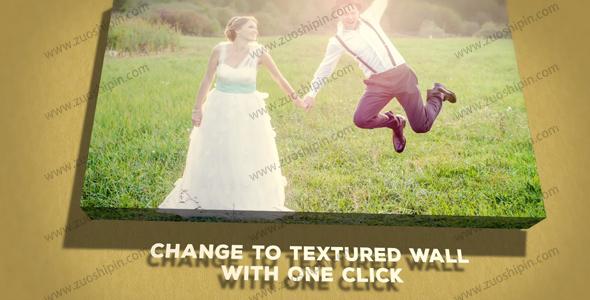 Display your wedding photography in this beautiful Gallery Wedding Story After Effects template! Place your photos on gallery wrapped frames for a unique slide show. Everything is customizable!