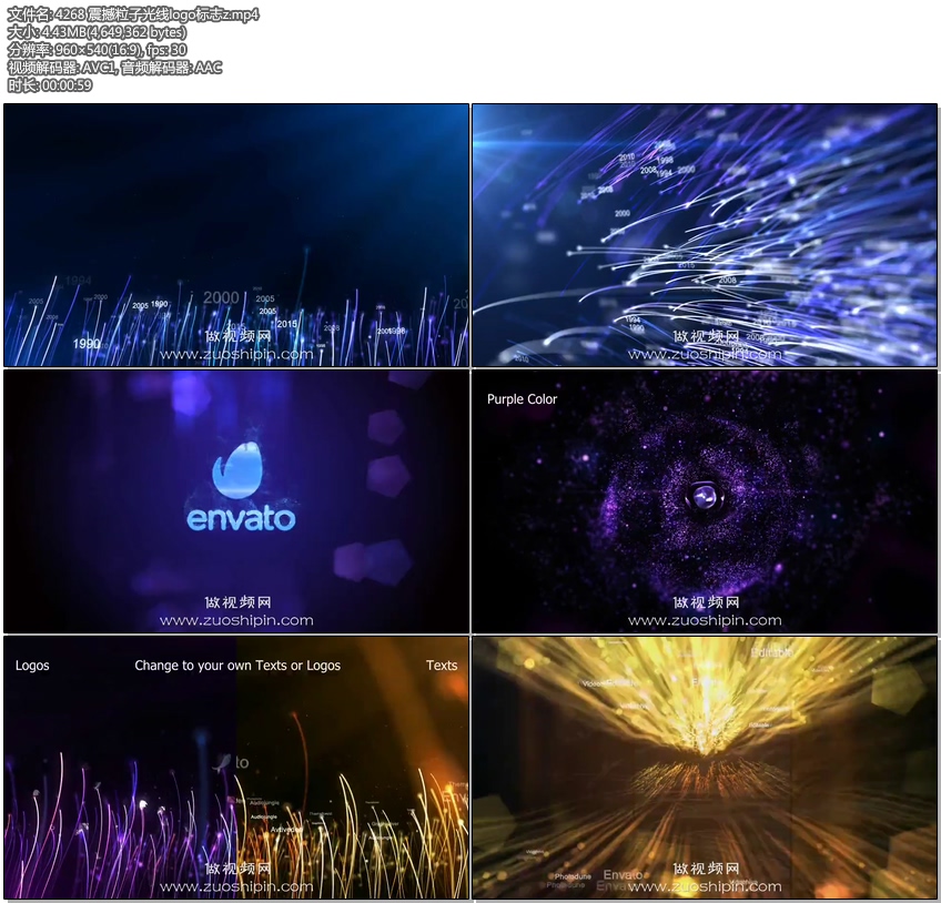 - You can easily change the texts,particles size and logos.