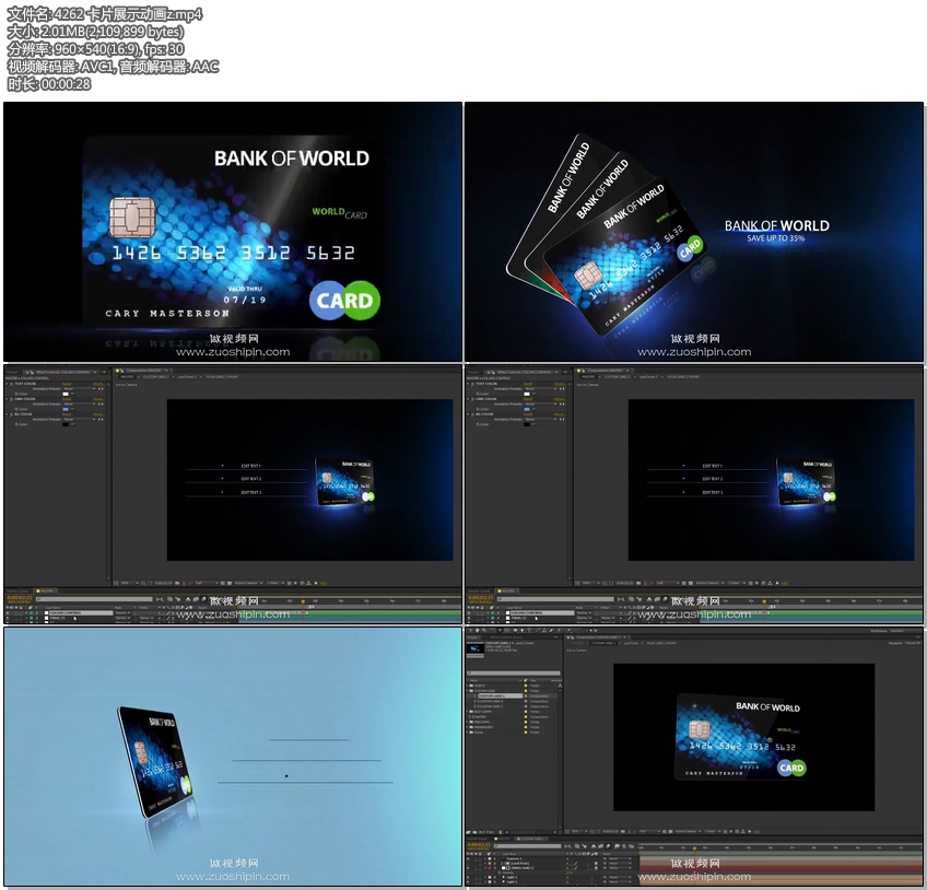 关键词:卡片,信用卡,动画,展示,产品,推广,介绍,AE,模板,素材