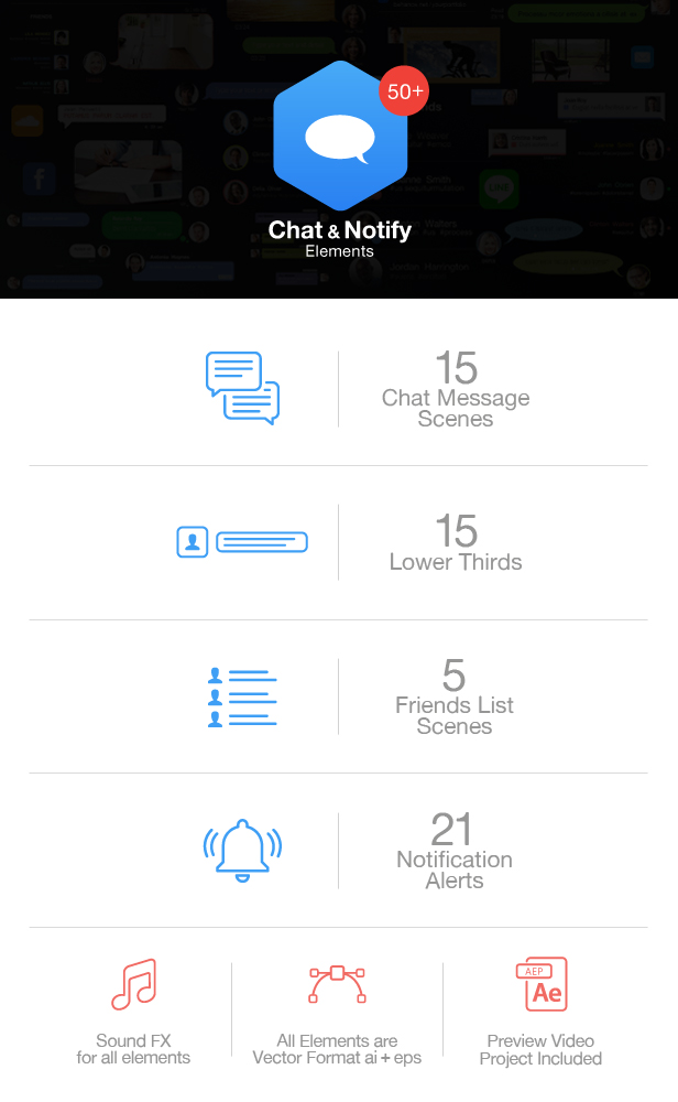 追功网为用户提供AE模板文本字幕系列:聊天通信字幕元素AE模板素材Chat & Notify Elements的在线预览以及工程源文件的下载服务。