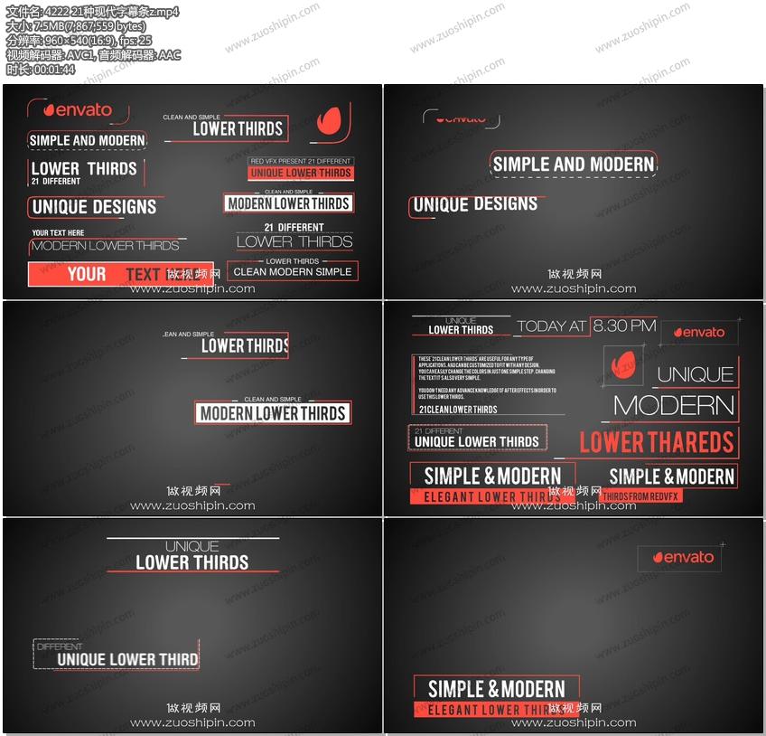 视频网为用户提供AE模板文本字幕系列:21种现代文本字幕条AE