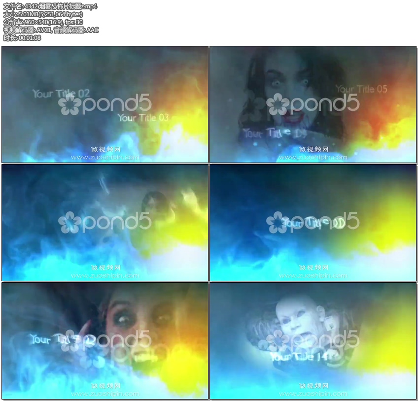关键词:烟雾,恐怖,恐怖片,开场,片头,文本,文字,标题,影视,电影,预告,预告片,AE,模板,素材