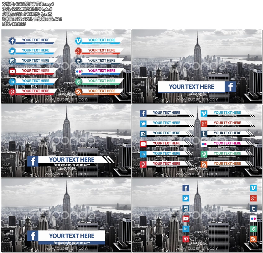 AE模板> 简洁文本标题字幕条AE模板素材clean-social-media-lower-third