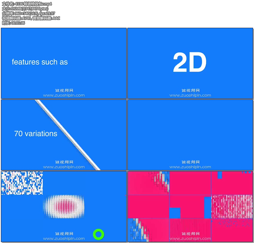 追功网为用户提供AE模板栏目包装系列:转场过渡特效包装AE模板素材Transition Pack - 70的在线预览以及工程源文件的下载服务。
