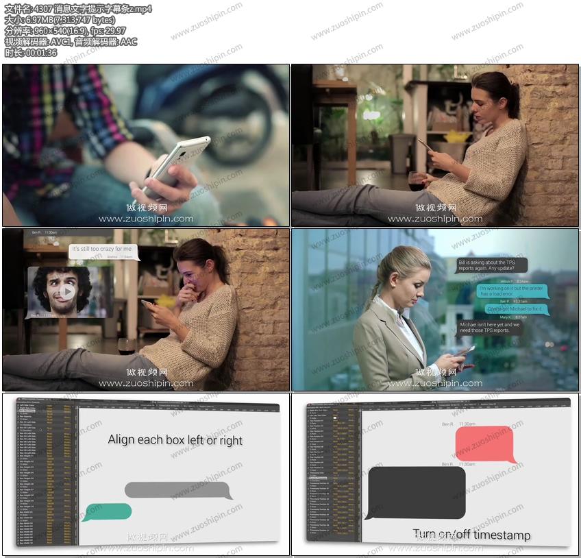 关键词:消息,气泡,文本,文字,标题,字幕,提示,字幕条,AE,模板,素材