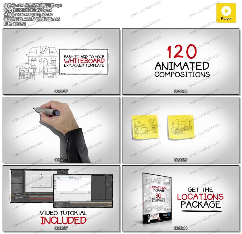 追功网为用户提供AE模板栏目包装系列:室内室外白板元素包装AE模板素材Locations Package 2的在线预览以及工程源文件的下载服务。