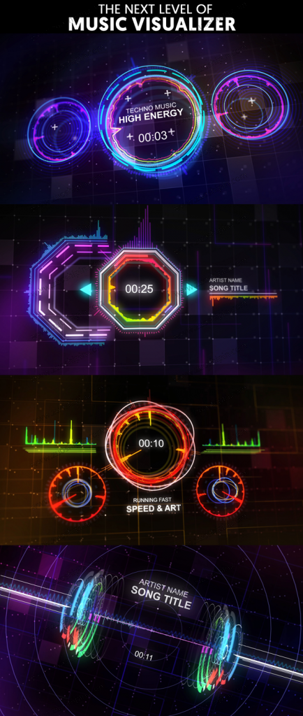 Techno Music Visualizer is a perfect template for making an awesome music video. You can use it to promote your music on YouTube, Vimeo or any other video service.