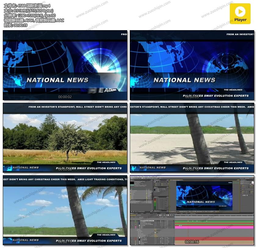 关键词:国际,电视,新闻,广播,栏目,包装,AE,模板,素材