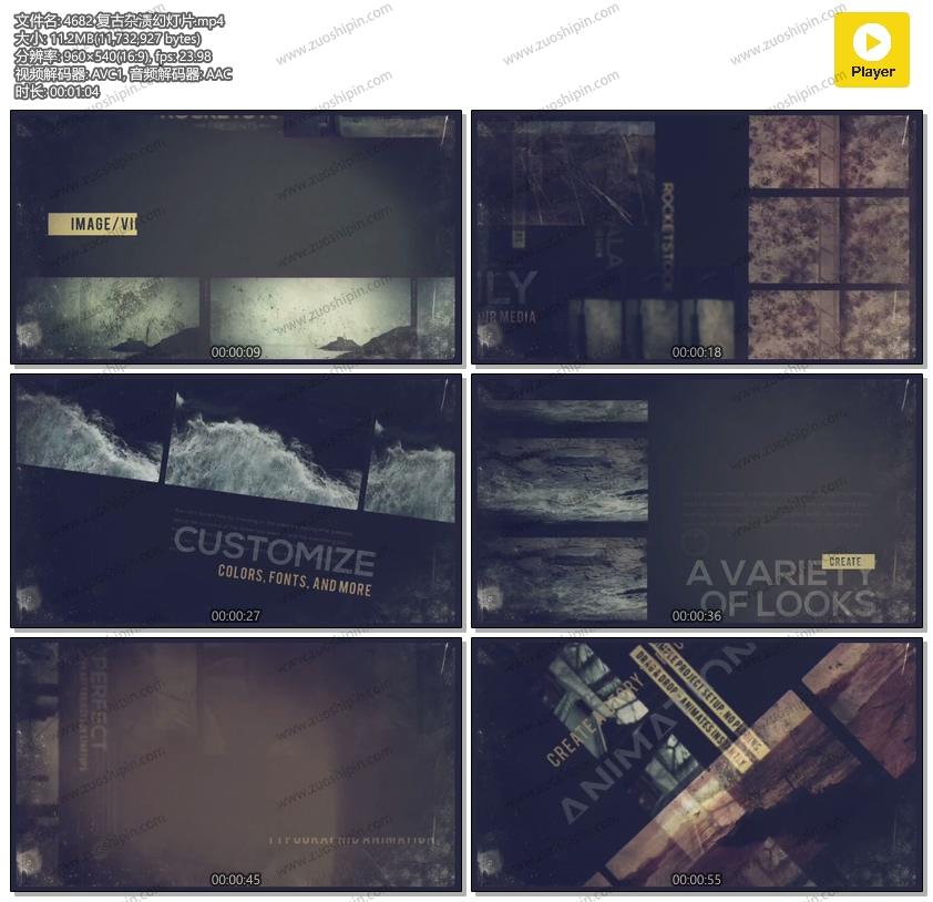 关键词:复古,杂渍,照片,图片,相片,幻灯片,视频,相册,AE,模板,素材
