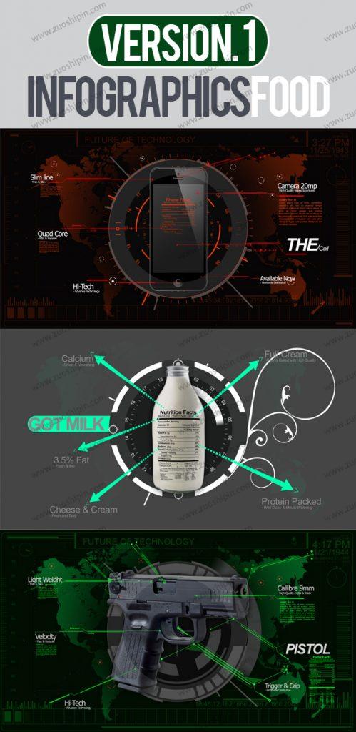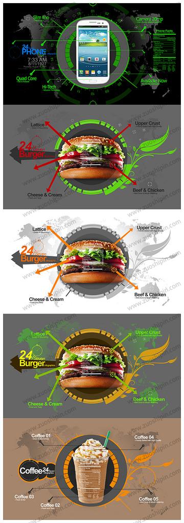 Hi-Tech Info-graphics for Nutrition and electronics and more.