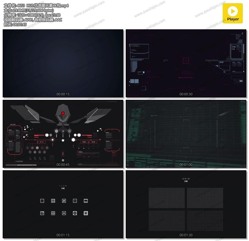 追功网为用户提供AE模板科技元素系列:HUD信息图元素4K包AE模板素材Videohive A1 HUD 4K PACK的在线预览以及